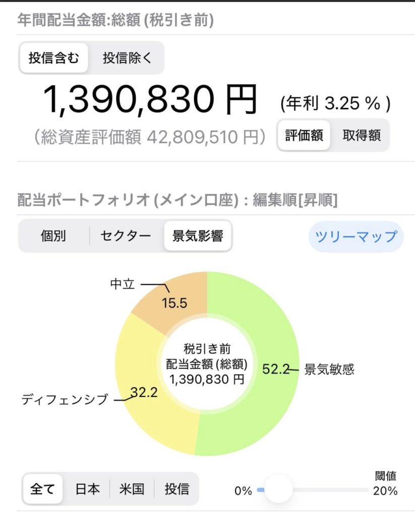 そして配当金ですが、1,390,830円/年となりました。