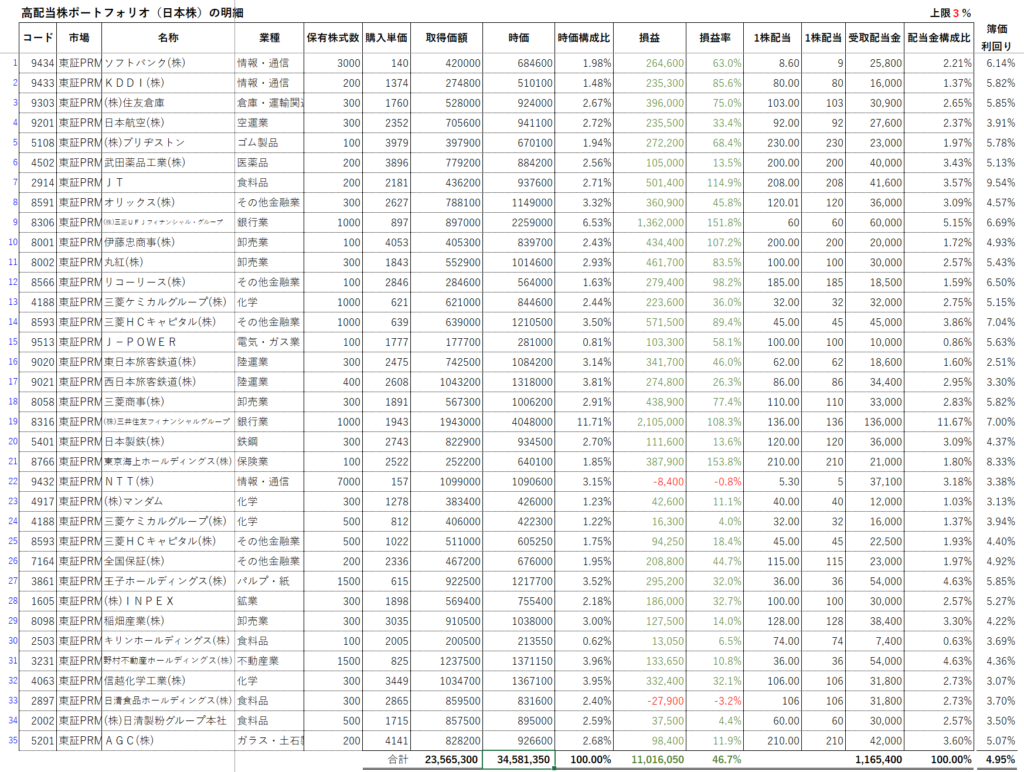 日本株の保有銘柄一覧です。