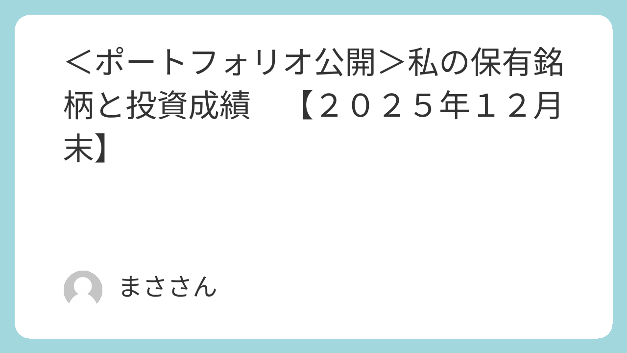 <ポートフォリオ公開>私の保有銘柄と投資成績 【2025年振り返りと2026年投資方針】