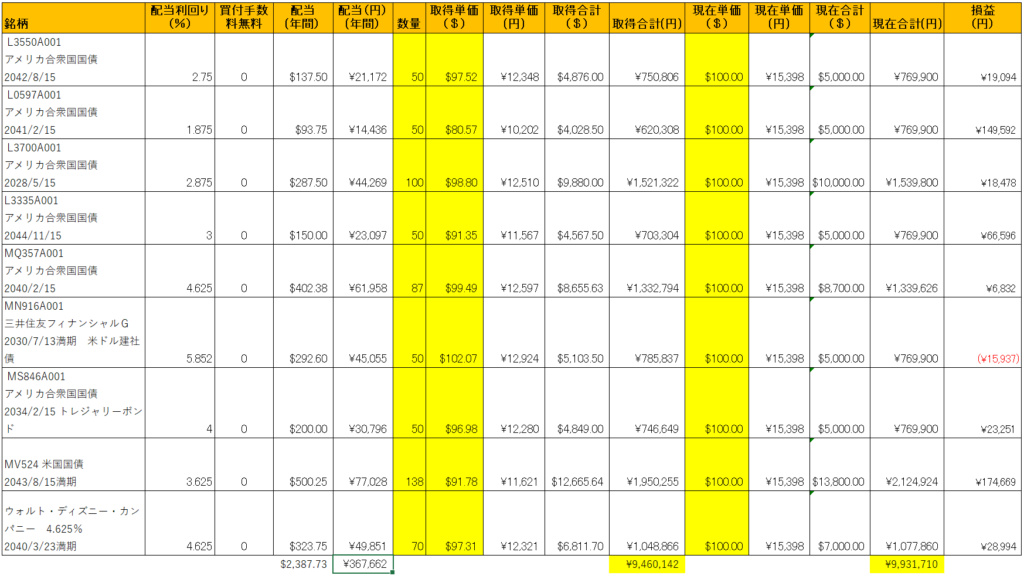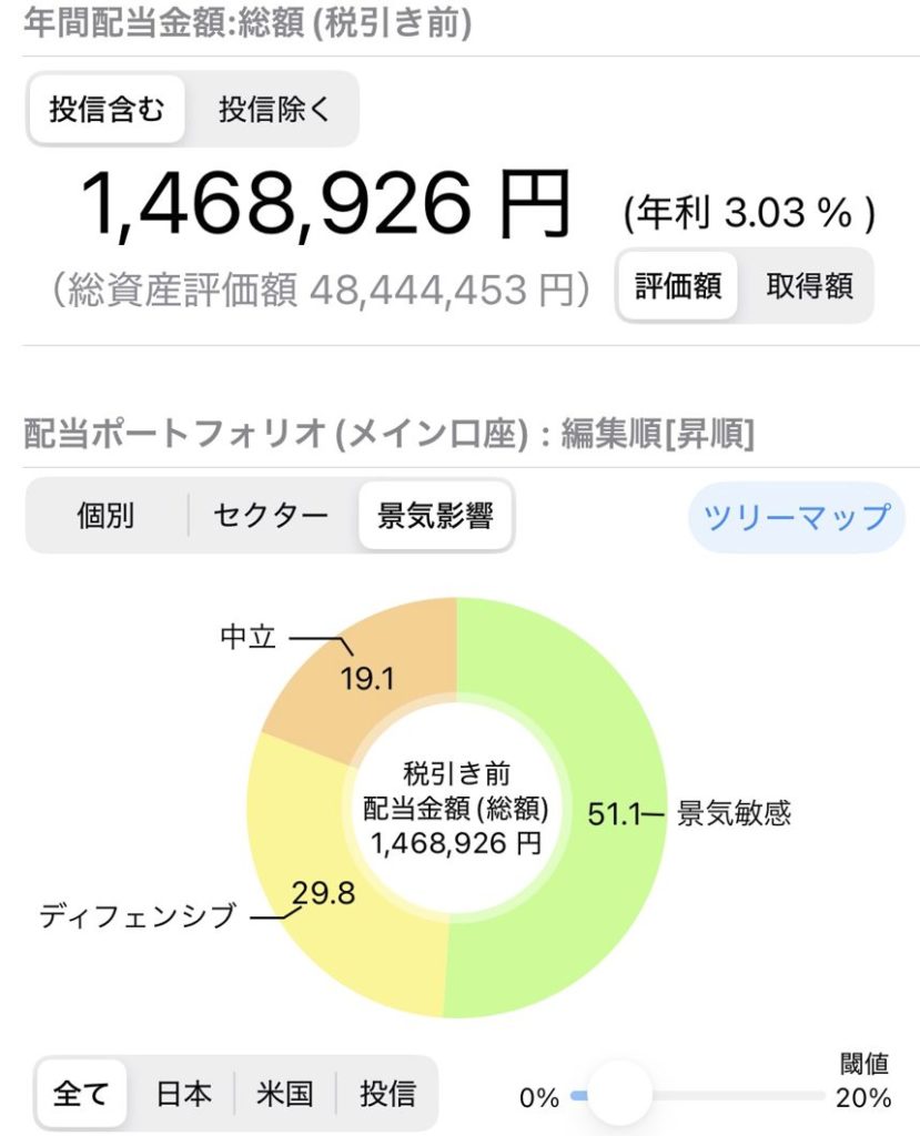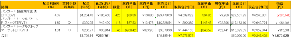 これ以外に米国債が約36万円ありますので配当利回り合計は実質182万円/年になりました。
